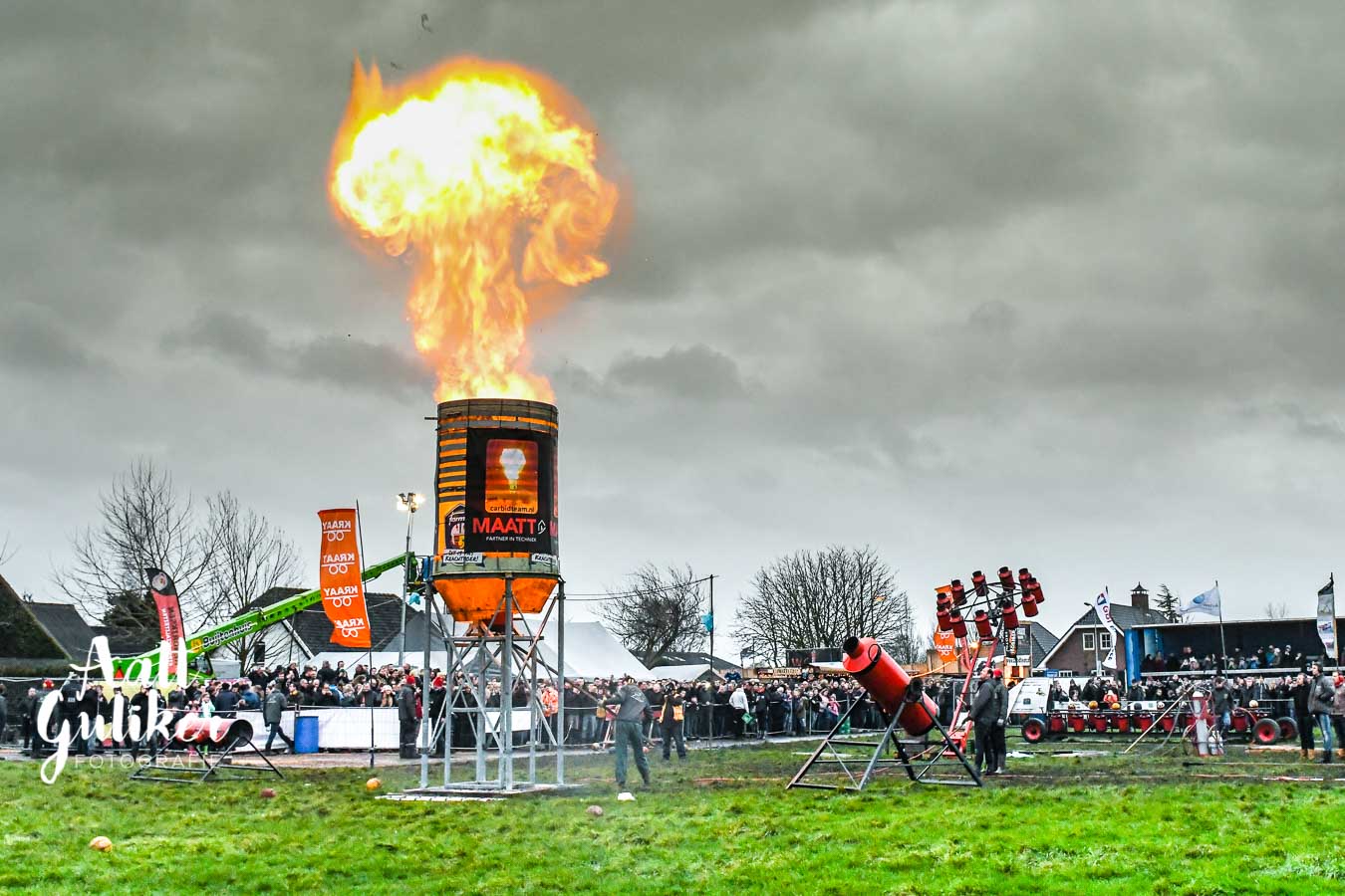 Na twee jaar stilte beleeft Nijkerkerveen eind dit jaar weer het traditionele carbidfeest. ,,We gaan er weer volle gas tegenaan, tenzij we te maken krijgen met de coronaregels maar daar gaan we niet vanuit,'' zegt Jonny Landman, één van de organisatoren van het Carbidteam Nijkerkerveen. Het decor is opnieuw de Schoolstraat waar naast de gebruikelijke opstelling een extra bar wordt toegevoegd. De toegang blijft gratis, maar er wordt wel afscheid genomen van de fooienpot. Iedereen kon tot dusver onbeperkt gratis eten en drinken, en vervolgens een vrijwillige donatie doen in de fooienpot, maar dit jaar ontkomt de organisatie er niet aan om met muntjes te gaan werken. Dat geldt met name voor het drinken. Diverse etenswaren blijven kosteloos. De prijzen zijn flink gestegen en anders is het niet meer mogelijk om een carbidfeest te organiseren, meldt Landman over het carbidfeest waar dit jaar naar verwachting ook weer duizenden mensen op af komen. Bron Kees van den Heuvel, Foto Aalt Guliker