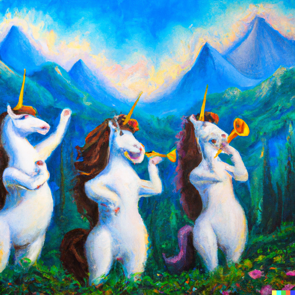 De illustratie bovenaan is gemaakt door DALL-E, ook een product van OpenAI dat plaatjes genereert op basis van teksten (in dit geval The Mountain Unicorns singing about the beauty of unicorns).