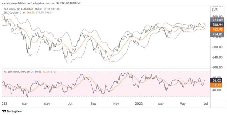AEX blijft hangen in smalle bandbreedte.
