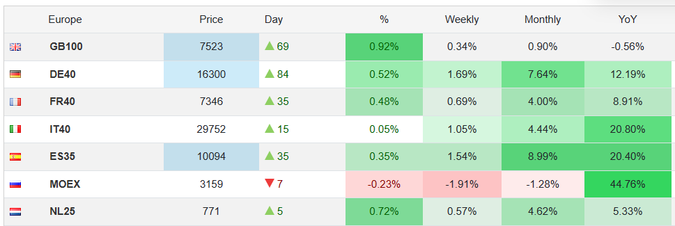 AEX-aandelen met een winst van meer dan 1%: ASML en Adyen. Alleen Prosus staat iets meer dan 1% lager. De ontwikkeling van de inflatie sterkt de verwachting van de ECB de rente in 2024 zal verlagen. Europese markten hebben een mooie november-maand achter de rug.