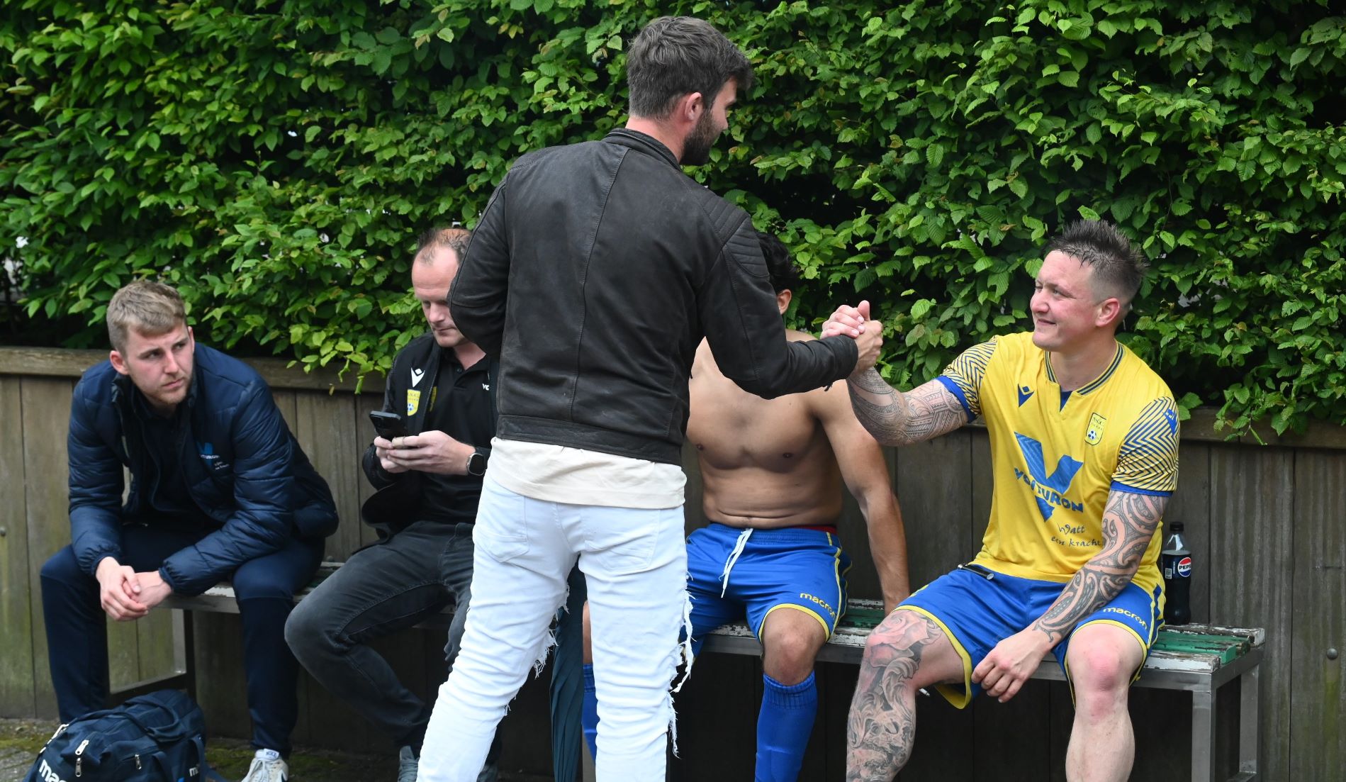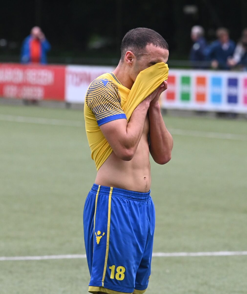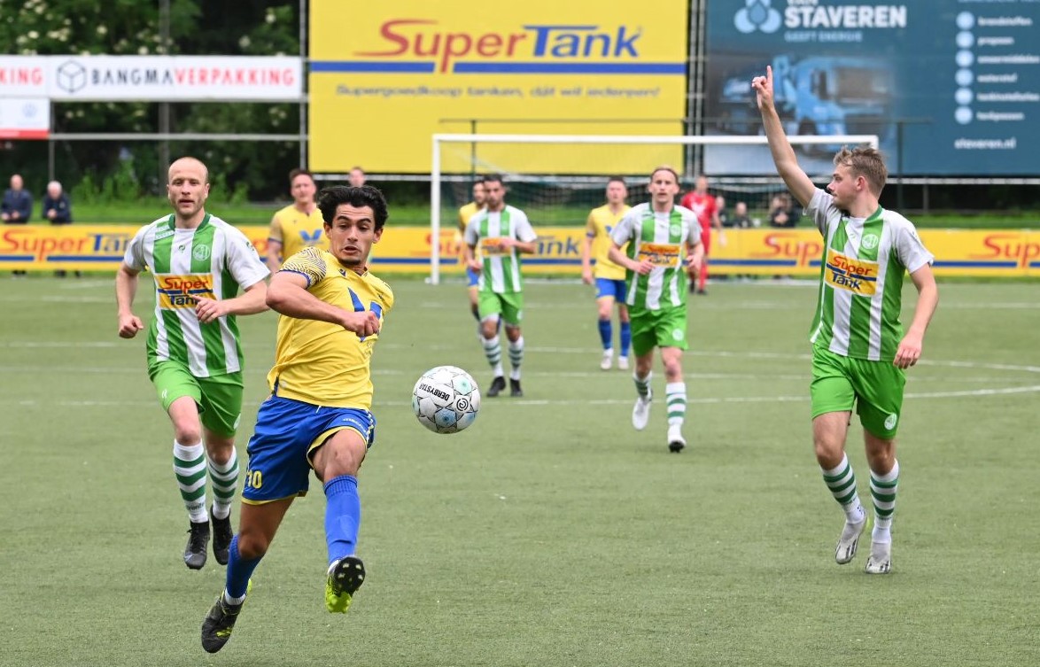 Lange tijd wist NSC Nijkerk zaterdag 25 mei tegen asv Dronten stand te houden, maar uiteindelijk werd het pleit alsnog beslecht, tien minuten voor tijd. Want toen scoorde asv Dronten en na een tweede goal koesteren niemand van de Nijkerkers nog illusies. NSC Nijkerk gaat degraderen naar de Tweede Klasse. Gerben Hilgers hield NSC lange tijd op de been en hij was terecht de beste man op het veld. Trainer Ruud van de Geest: ''Hij was sowieso de man van de wedstrijd. Als je dat al zegt, dan weet je eigenlijk al genoeg en was de rest van het team minder. Dit is een zure appel en daar moeten we even doorheen. Straks gaan we weer met frisse moed aan de slag. We waren niet goed genoeg.'' NSC Nijkerk bivakkeerde al geruime tijd in de kelder van de eerste klasse, maar er werden evenwel in de laatste vier wedstrijden goede resultaten behaald. Van de Geest: ,,We hebben een leuke inhaalrace gehad aan het einde. Maar nu moesten we tegen de nummer 3 en Woezik tegen de onderste en dan weet je dat het heel lastig wordt.'' De focus gaat nu op het nieuwe seizoen in de tweede klasse. Er gaat een aantal jongens weg en er komen er een paar bij. De namen van de nieuwelingen wil Ruud van de Geest nog niet allemaal prijsgeven. Foto Kees van den Heuvel