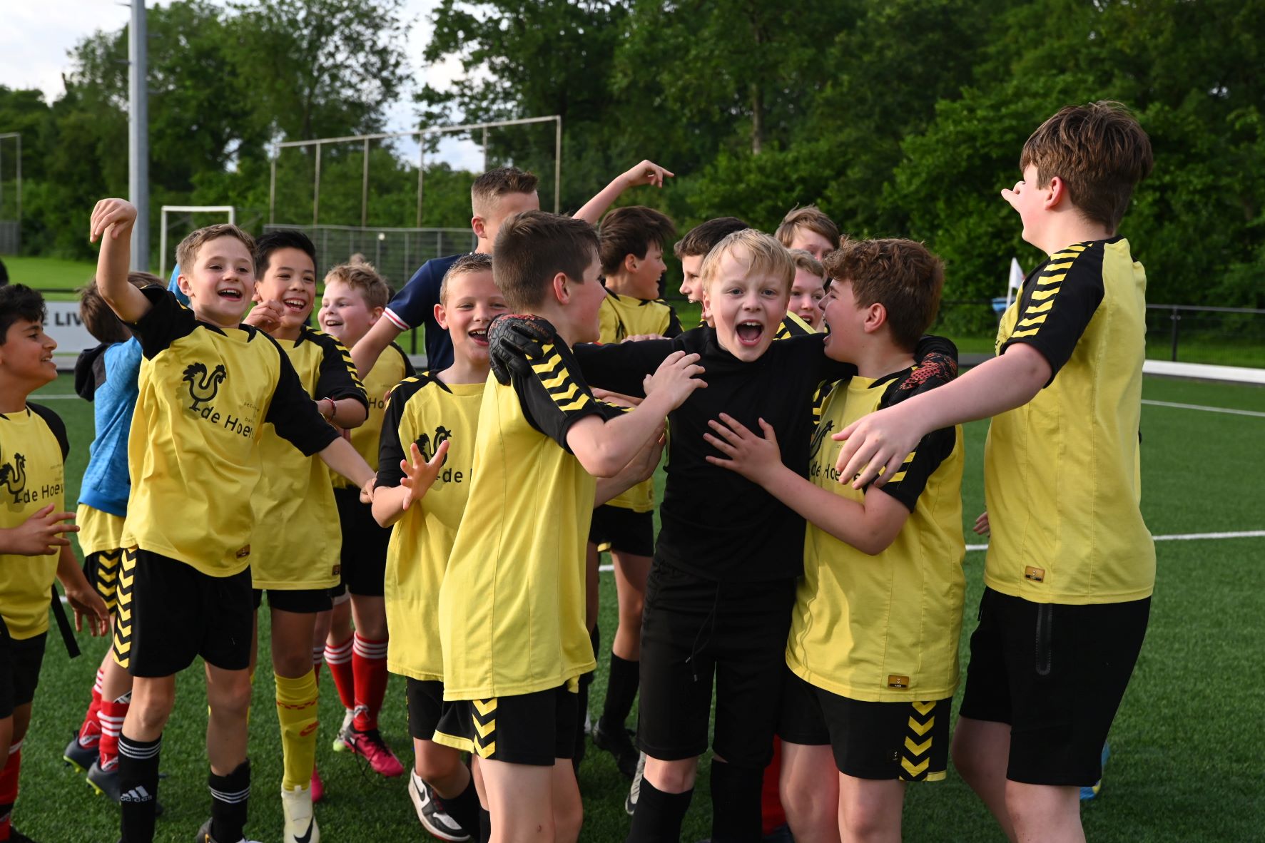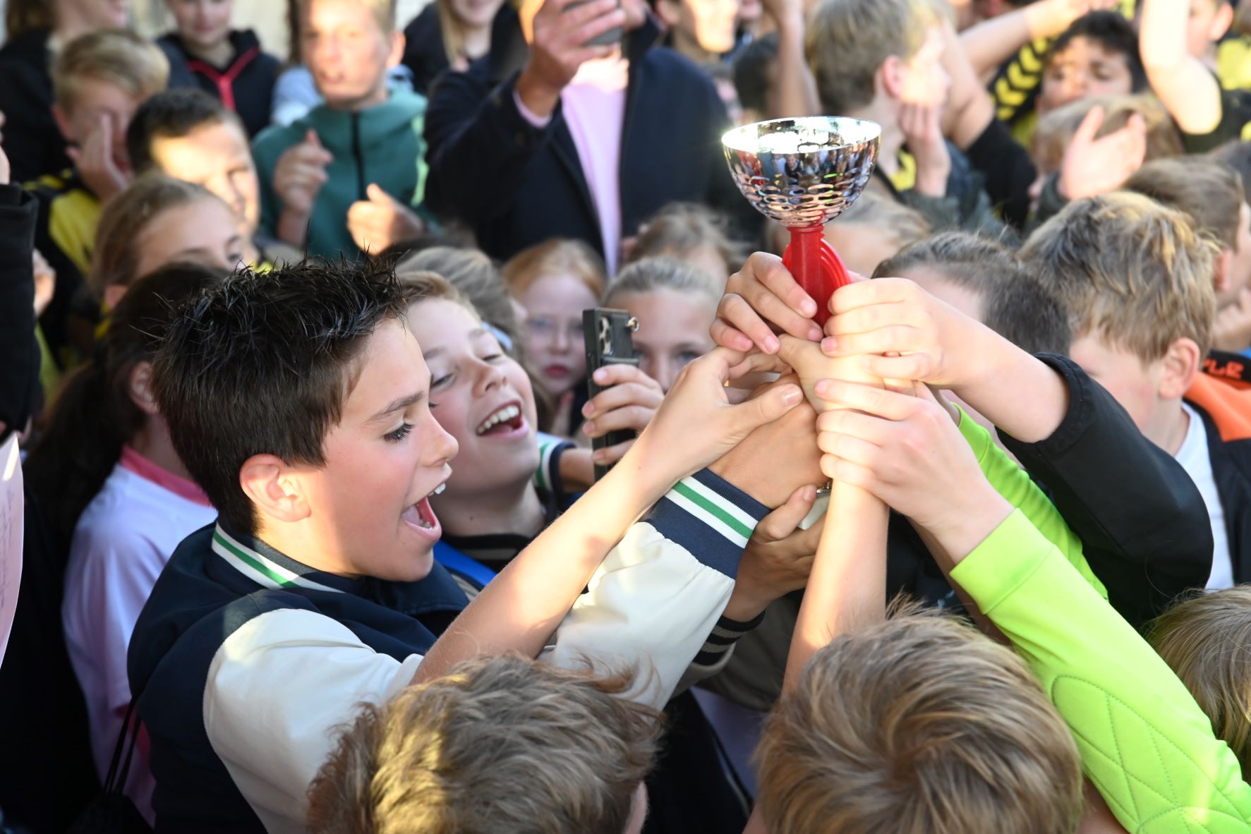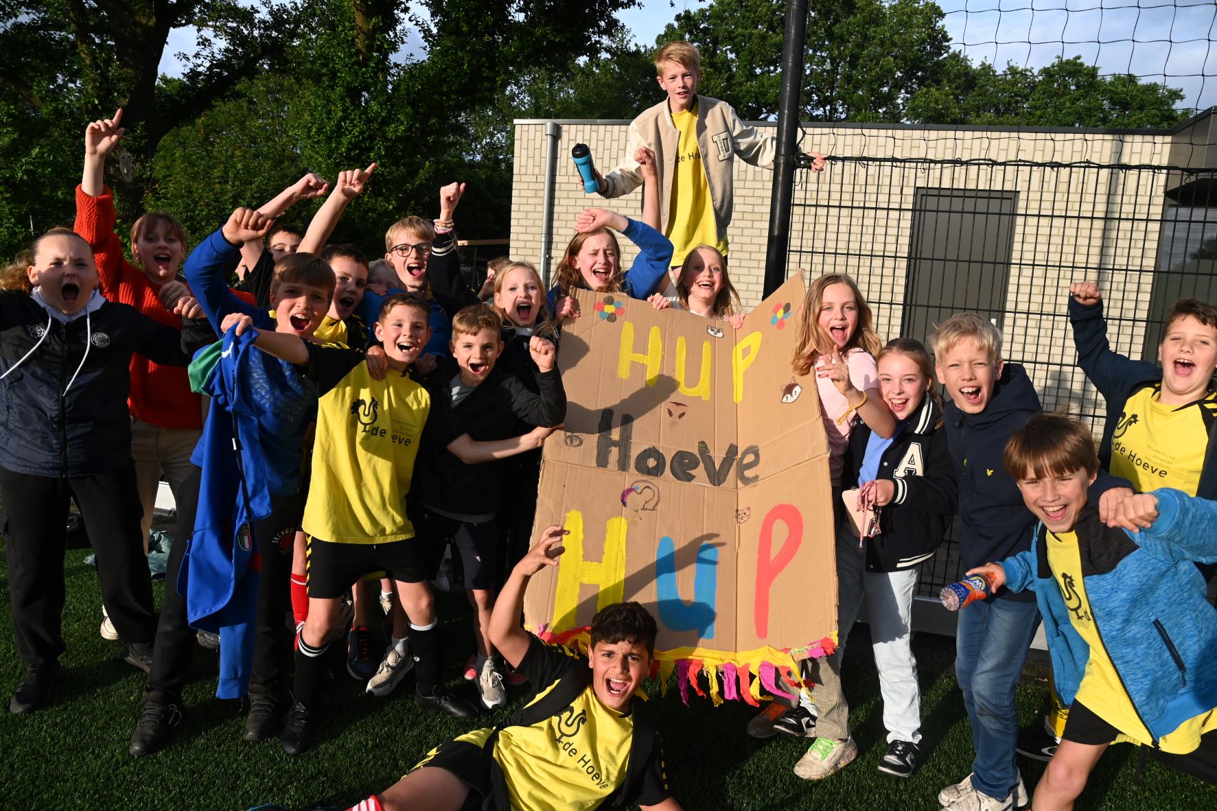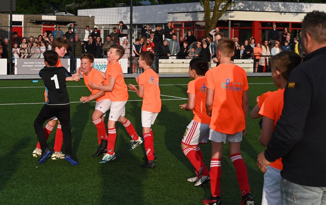 Vrijdagavond 31 mei werden de uitgestelde finales gespeeld om het kampioenschap van het schoolvoetbal Hoevelaken. Het leverde vier uitermate spannende finales op. De belangrijkste, die tussen de groepen 8 van de jongens van de Spreng en de Hoeve, eindigde in een overwinning voor de mannen van De Hoeve. Zij wisten de penalty's beter te benutten. De winnaars kregen de beker met de grote oren overhandigd door Daan Vinke, speler van het eerste team van Hoevelaken. Er waren eveneens penalty's nodig bij de finale meisjes voor de groepen 7 tussen De Spreng en het Blokhuus. De laatste school won uiteindelijk met 8-7. Bij de groepen 7 van de jongens won De Hoeve van Blokhuus. Verder was er nog een finale tussen de groepen 8 van de meisjes. Willem Farel werd hier tweede en winnaar werd Blokhuus. Foto en Kees van den Heuvel