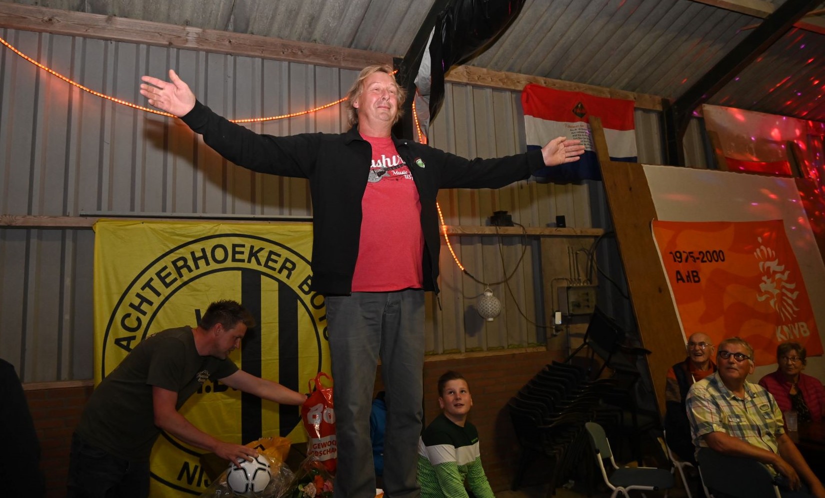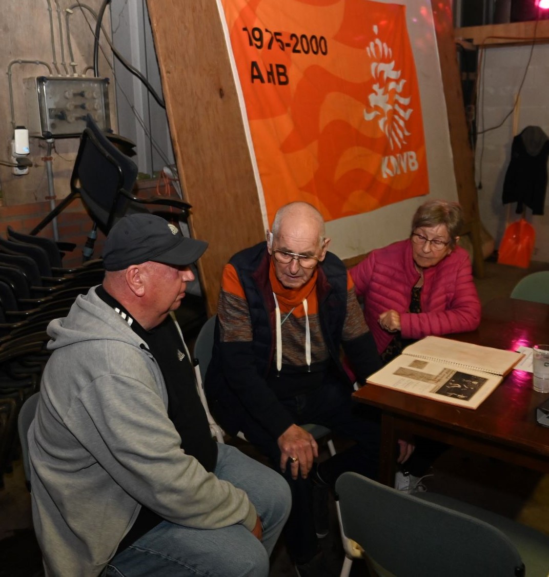 Zaterdagavond 1 juni organiseerden de Achterhoeker Boys (AHB) op de Bunschoterstraat in Nijkerk een reünie vanwege het 50-jarige bestaan van de Nijkerkse zaalvoetbalvereniging. Het was er erg druk. In de hoogtijdagen bestond AHB zelfs uit zeven teams, het zijn er nu minder, maar ze zijn nog altijd alive and kicking tijdens voetbalwedstrijden in de sporthallen Strijland en Watergoor. Voorzitter Evert Waaijenberg eerde de oprichters van AHB met het uitreiken van een presentje, maar daarna ging het al snel over naar de orde van de avond en dat betekende feestvieren en veel herinneringen ophalen. Foto Kees van den Heuvel