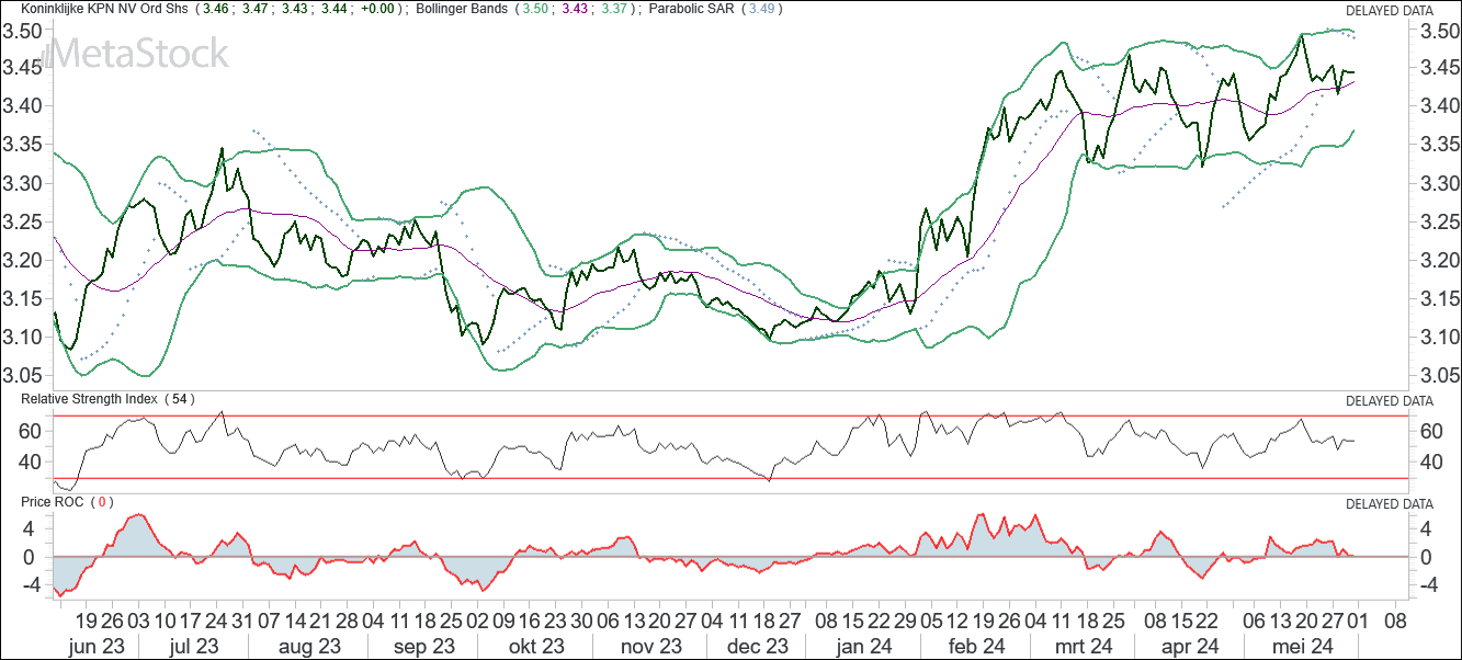 Totaal werd er gekocht en verkocht voor ongeveer 341 miljoen euro in het aandeel, wat overeenkomt met 12 keer de gemiddelde omzet per dag. Koninklijke KPN NV (KPN) liet een zijwaartse ontwikkeling zien, en sloot op 3.44 euro (0.0%). Het aandeel is trendmatig positief op de middellange termijn, heeft steun rond 3.23 euro en een verdere stijging is waarschijnlijk, meent Investtech.