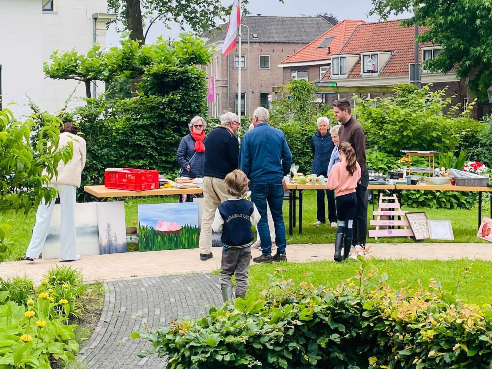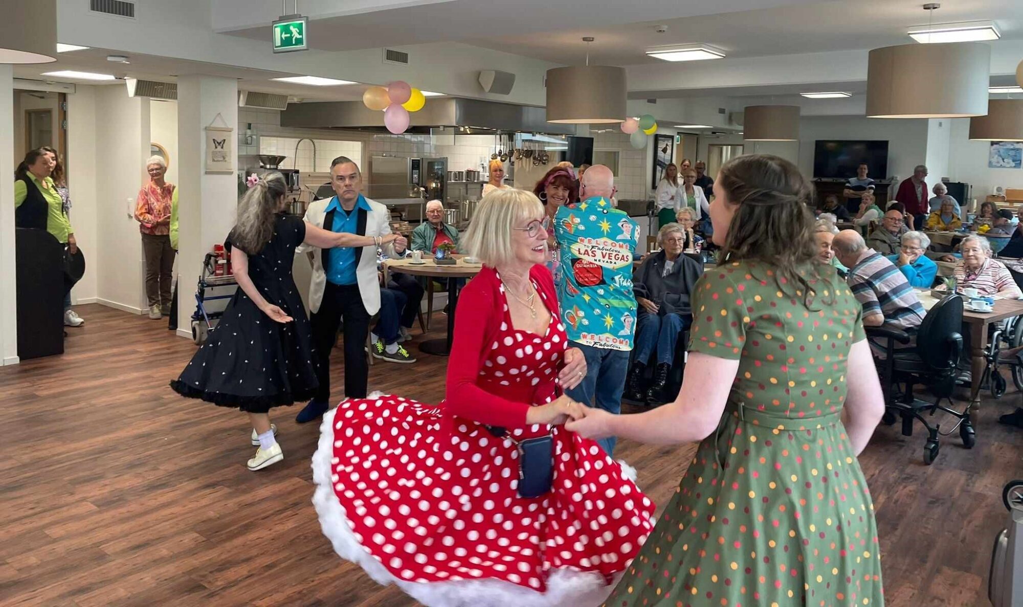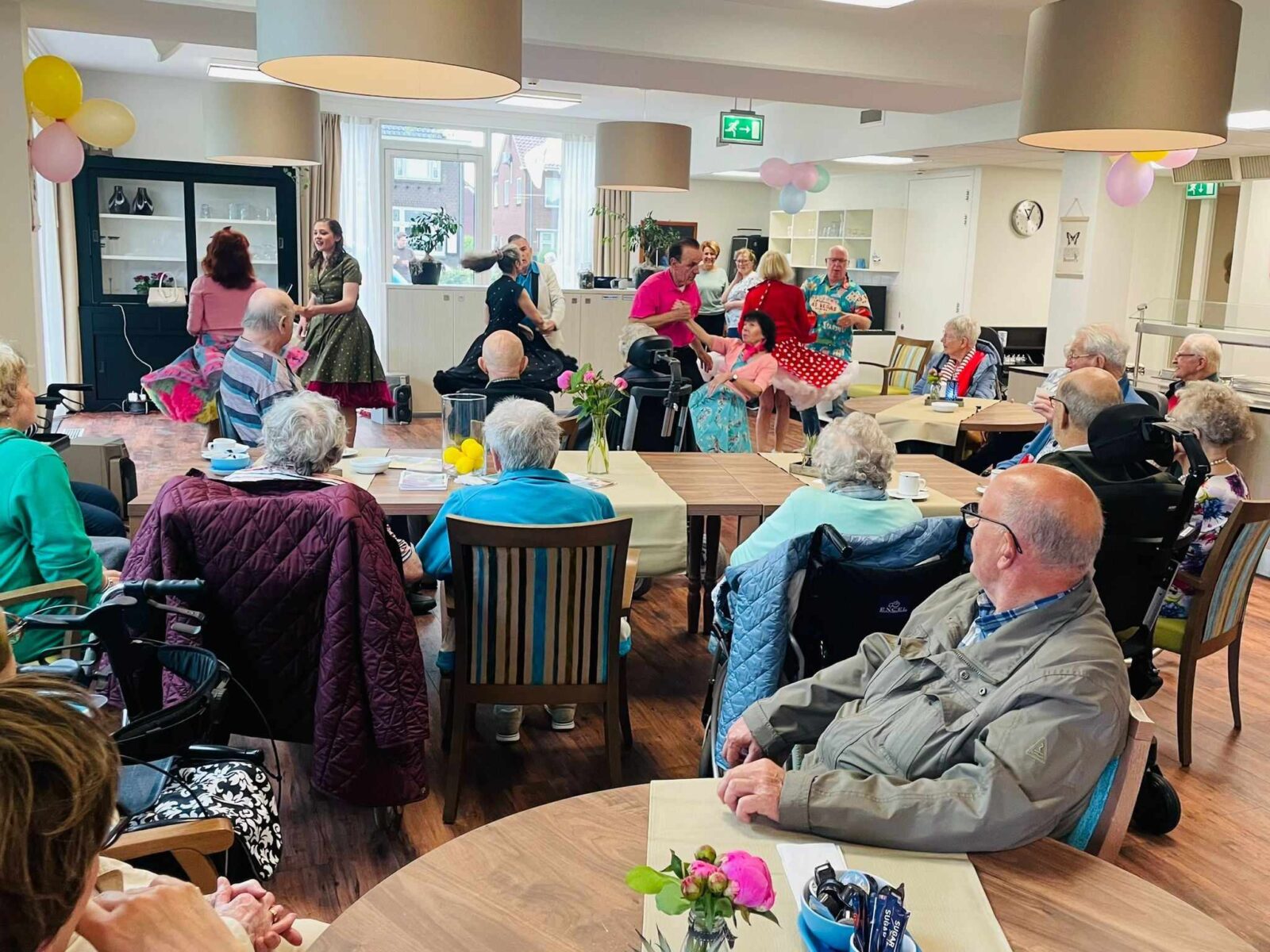 Zaterdag 1 juni werd een open dag georganiseerd op verzorgingscentrum Amaris Arkemheen in Nijkerk. Er wordt terug gekeken op een geslaagde open dag. De bezoekers werden verwelkomd met koffie met gebak. Daarna werd ze een rondleiding aangeboden. Vijf bewoners hadden hun appartement open gesteld voor bezichtiging. Ook was er een boeken- en rommelkraam en de Breiclub die elke maandagmiddag de mooiste spullen maakt. De opbrengt van hun mooie creaties is voor de activiteiten van de bewoners van Arkemheen. Meebreien kan overigens op maandagmiddag. Tussendoor trad de Rock 'n Rollgroep Guys en Dolls op. Foto Kees van den Heuvel e.a.