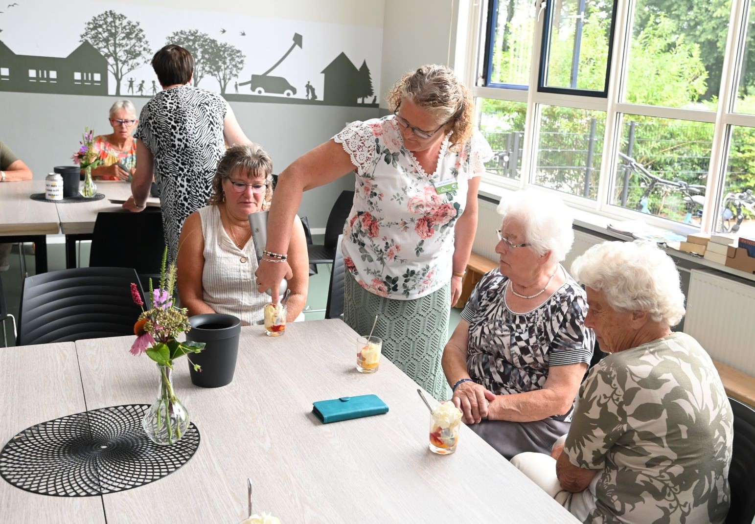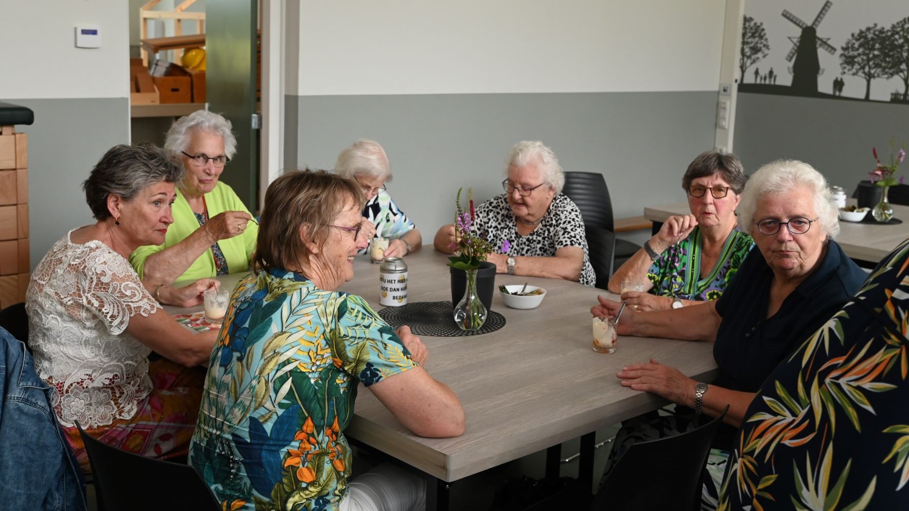 In het buurthuis Het Appelhuus van de Nijkerkse buurtvereniging Appel-Driedorp was het donderdag 1 augustus weer enorm druk tijdens een samenkomst. Ditmaal geen sprekers maar een heerlijke sorbet voor de aanwezigen. Vanaf 5 september zijn er in het Appelhuus weer meer activiteiten zoals een quiz over de kern Appel-Driedorp. Foto Kees van den Heuvel