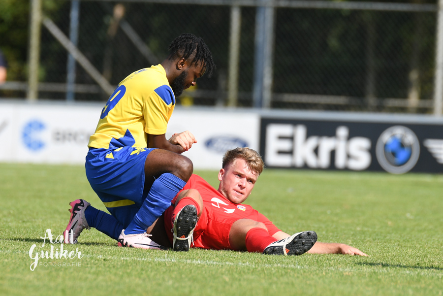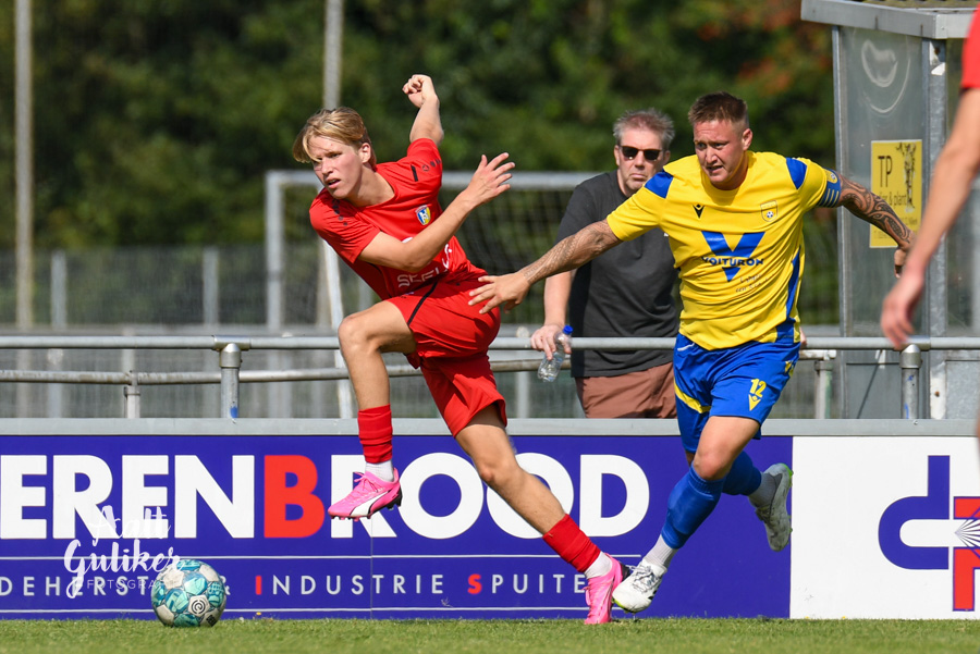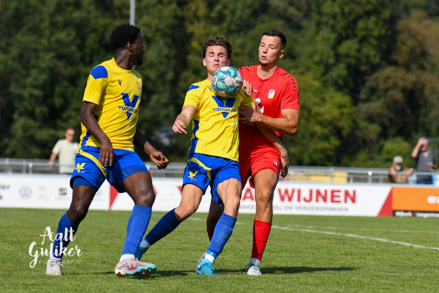 NSC Nijkerk heeft in de beker goede zaken gedaan. Het team van trainer Ruud van de Geest won op de eigen Burcht met 3-1 van Nunspeet, tevens tegenstander van NSC in de tweede klasse. Al na een minuut viel de 1-0. Ivenzo Comvalius schoot hard binnen in de kruising na een snelle uitbraak. Daarna was het lange tijd dat Nunspeet het betere van het spel bood. Uiteindelijk kreeg de tegenstander loon na werken. Via een strafschop scoorde Asse Visscher. Na rust maakten de Nijkerkers echter het verschil. Met twee goals van Quincy Roman vergrootte NSC de marge. Volgende week speelt NSC Nijkerk tegen DTS dat met 0-1 won van Veensche Boys. Foto's Aalt Guliker